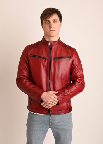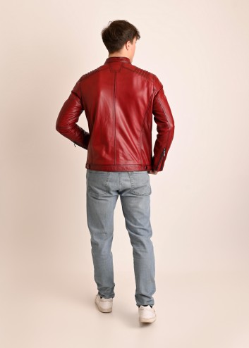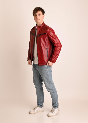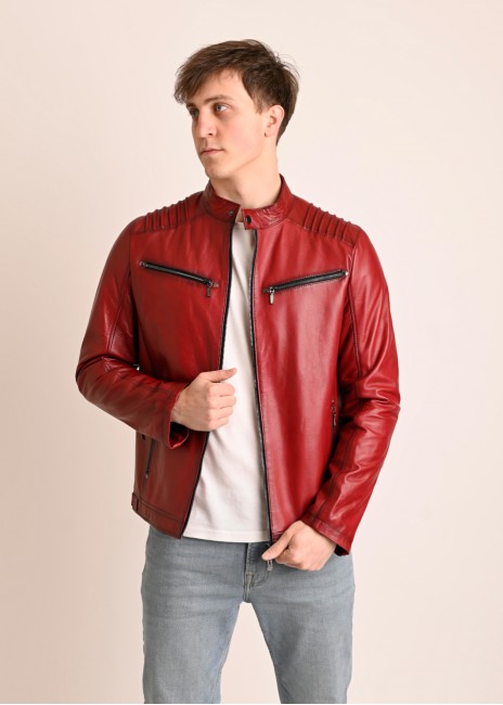 Męska kurtka skórzana o klasycznym kroju. Uszyta z miękkiej, naturalnej skóry w kolorze czerwonym.