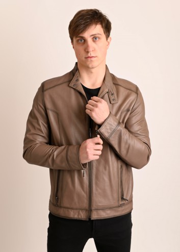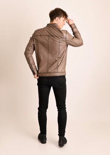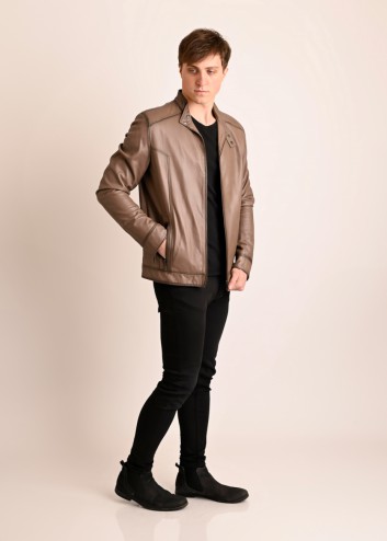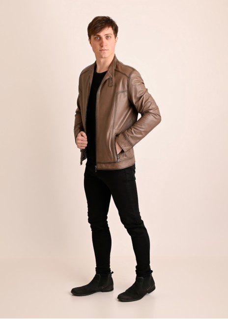Skórzana kurtka ze stójką męska beż